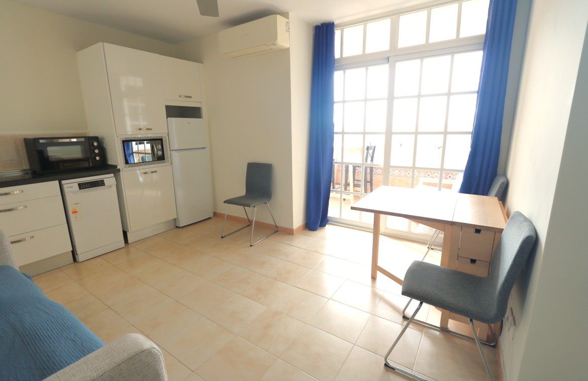 En superlägenhet med 1 sovrum och 1 badrum på 11:e våningen med terrass i västerläge för soliga eftermiddagar. Fantastisk utsikt över havet och Fuengirola samt fantastiska solnedgångar. Beläget i hjärtat av Fuengirola och praktiskt taget vid havet. Bara 3 minuters promenad till buss- och tågstationen.