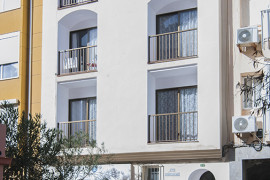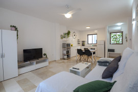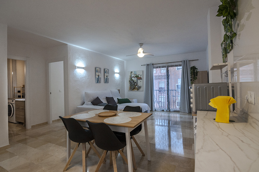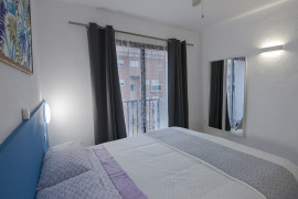 Ljus modern lägenhet med ett sovrum och fransk balkong