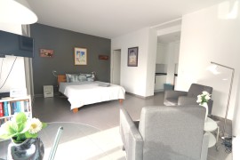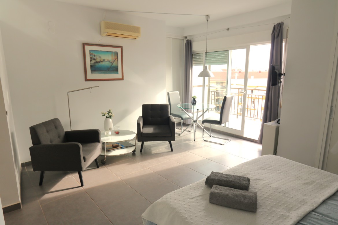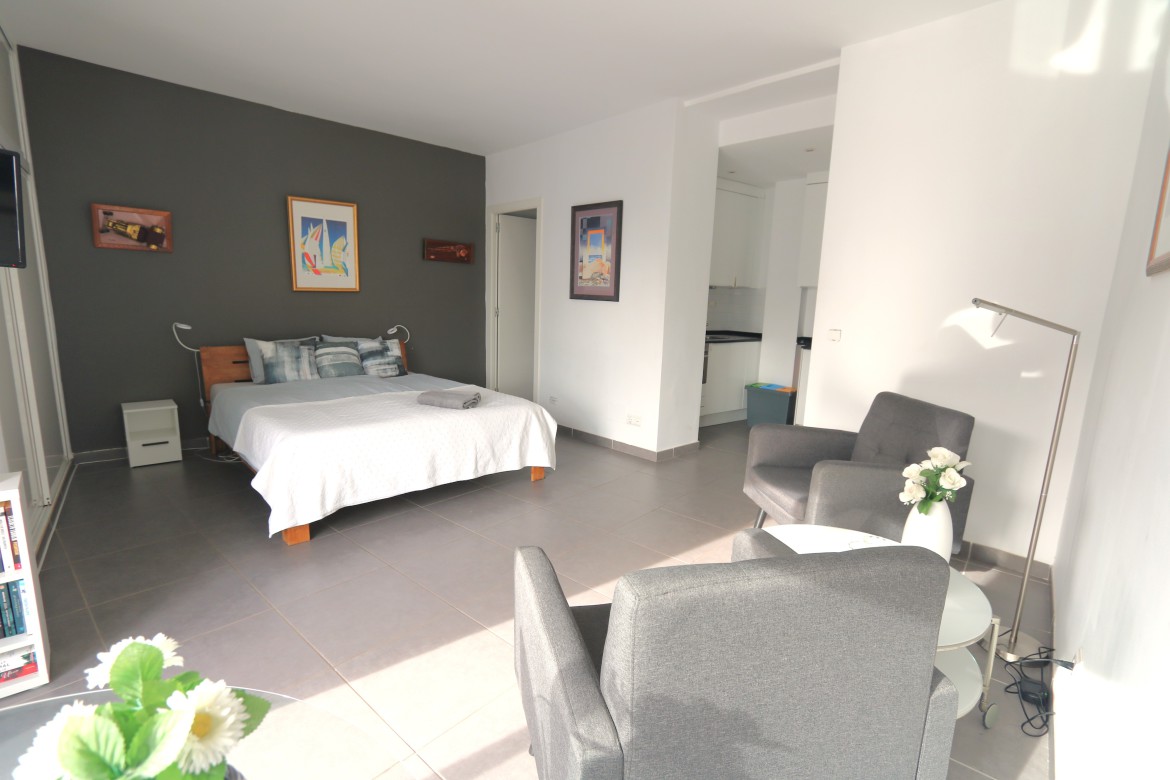 Vår vackra studiolägenhet ligger i stadens centrum. Mycket mysig, solig och ljus lägenhet. Den har bara en stor säng, så den är lämplig för ett par. Den är även utrustad med ett pentry med köksredskap för lättare matlagning. Lägenheten har ett eget badrum och ni har hela boendet för er själva utan andra gäster i samma rum. Lägenheten är fullt möblerad med sängkläder, handdukar, enkla toalettartiklar och luftkonditionering.